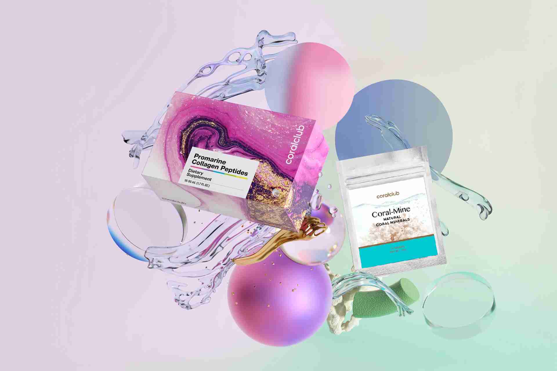Жидкий морской гидролизованный коллаген в изящных стеклянных флаконах для сияющей гладкой кожи, блестящих волос и крепких ногтей.